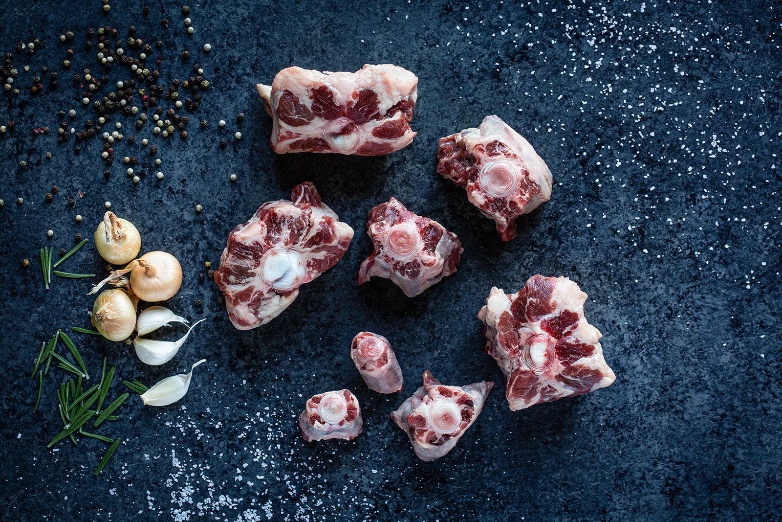 Oxtail—rich in collagen protein and iron—is deeply flavorful and succulent. Our oxtail is skinned and cut into multiple sections, making it perfect for stew, beef broth, stock or slow braising. We raise our animals twice as long as what is normal, which creates the richest flavor you've ever had.